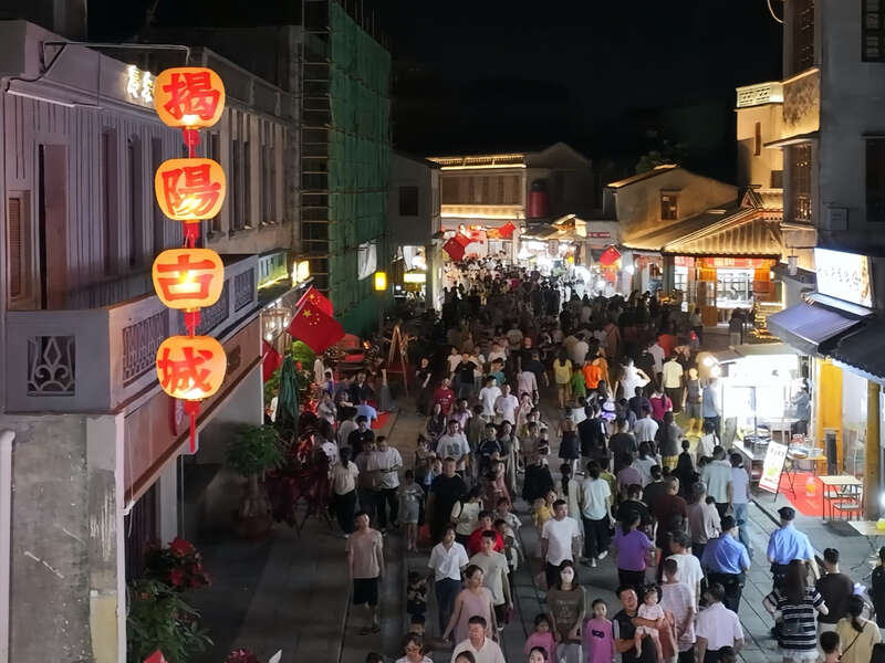中国青年报客户端讯(肖明葵 中青报·中青网记者 林洁)近日,广东揭阳活力古城改造提升项目——中山路308栋南洋风格骑楼修缮完工,该历史文化街区以连片拱廊、雕花灰塑的复古风貌开放。今年国庆中秋假期,街区迎来首秀,上演集歌舞、非遗、民俗、语言类节目于一体的文化活动,首日累计接待游客超10万人次。